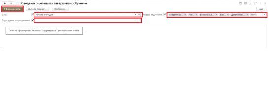 Для получения данных об обучающихся по целевому договору требуется указать необходимый(ые) уровень(и) образования в соответствующем поле (рис. 12), затем нажать на кнопку сформировать.