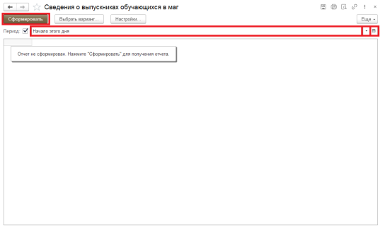 Рисунок 8. Настройка параметров отчета "Сведения о выпускниках обучающихся в маг"
