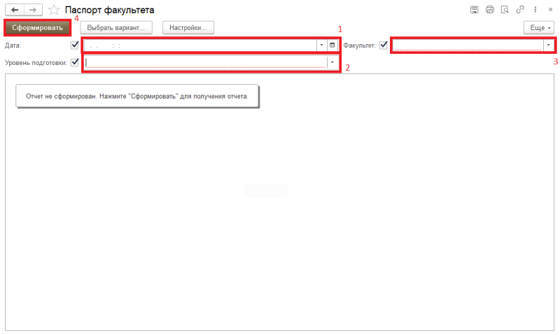 заполнение данных для формирования отчета