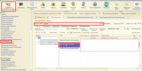 Для добавления фотографии физическому лицу (студенту) необходимо перейти в раздел "Управление студенческим составом" и с помощью поиска найти студента и нажать на него (рисунок 1).