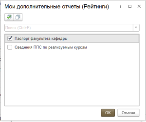 Данная инструкция содержит информацию о формировании отчетов по показателям рейтинга образовательных программ, расположенных во вкладке Дополнительные отчеты, подсистемы Рейтинги. Если данные отчеты не отображаются, то нужно добавить их самостоятельно, нажав Настроить список и выбрать необходимые (рис.1, 2).