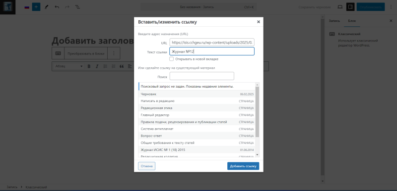 Уважаемые пользователи, просим вас не печатать статьи и инструкции по использованию сервисов ВГТУ. Материалы постоянно изменяются и дополняются, поэтому бумажные версии очень быстро потеряют свою актуальность.